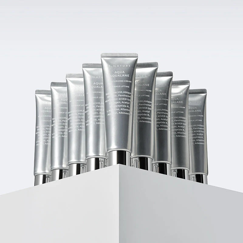 S.NATURE Aqua Squalane Moisturizing Cream is a deeply hydrating barrier-strengthening moisturizer formulated with high-concentration squalane (150,000ppm) to restore moisture balance and protect the skin barrier. It helps prevent dehydration while improving skin softness and elasticity.